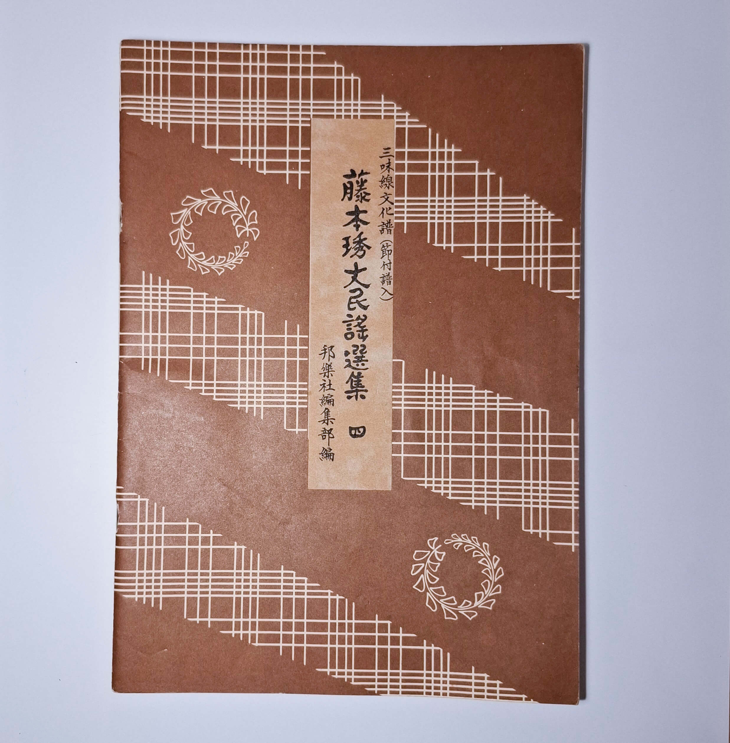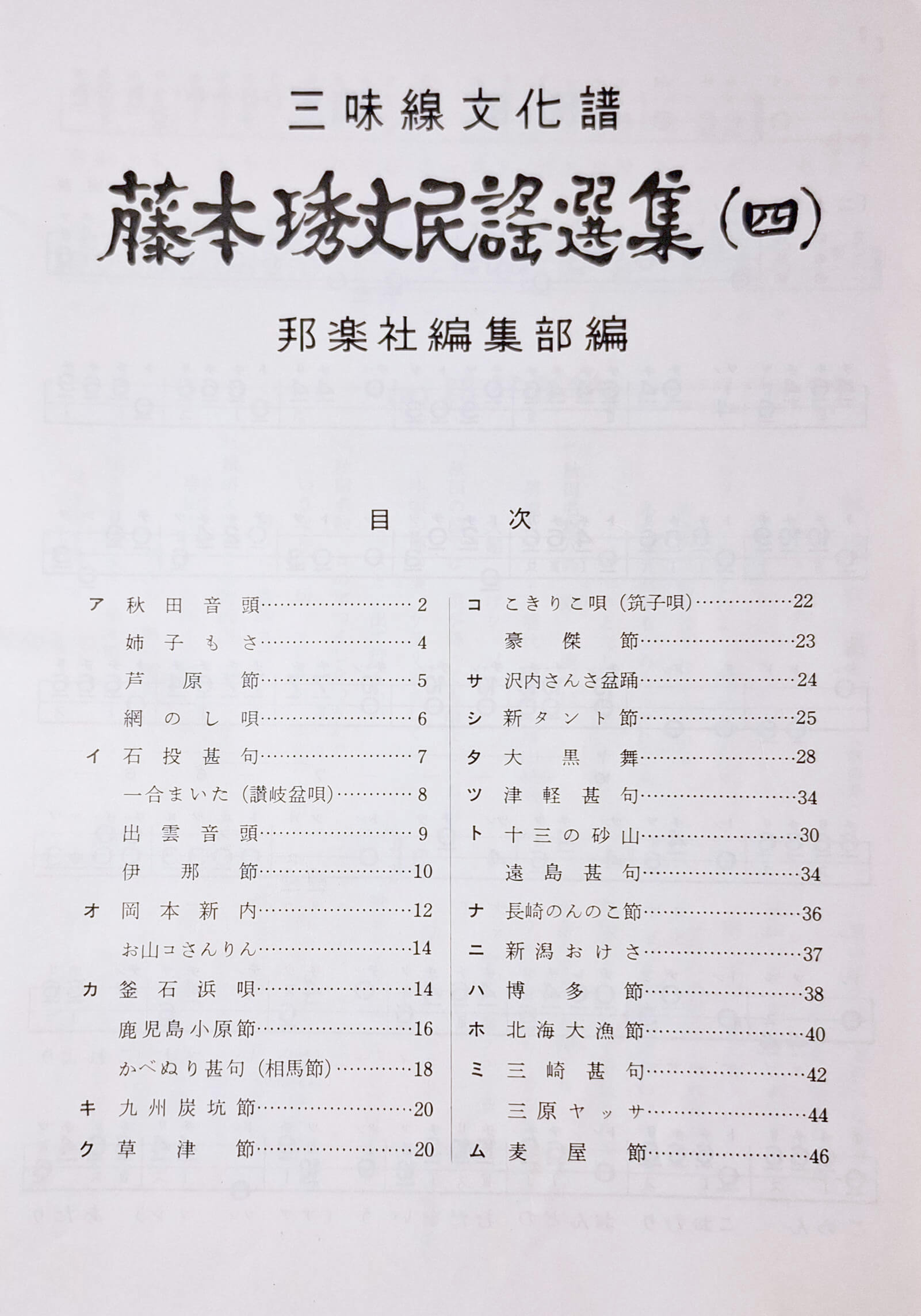 Fujimoto Ryuu ist eine der grรถรten Minyo-Schulen Japans. Dies ist ein gedrucktes Notenbuch fรผr Minyo-Versionen in dieser Schule.