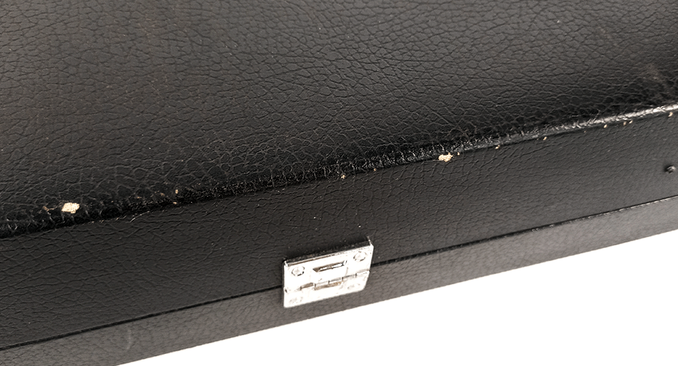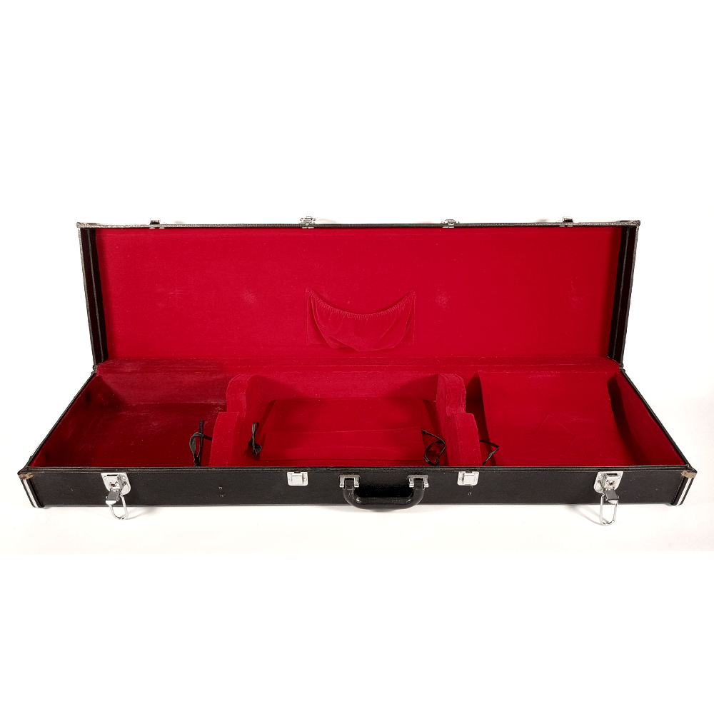 Eine klassische Schรถnheit. Mit dieser zeitlosen Farbkombination kann man nichts falsch machen. Dieses Longcase ist stabil und robust und schรผtzt deine Shamisen zuverlรคssig. An der kurzen Seite hat er zusรคtzliche Metallfรผรe, sodass der Koffer sicher aufrecht stehen kann, sowie einen Griff am oberen kurzen Ende fรผr einfaches Manรถvrieren in aufrechter Position. Da der Kasten gebraucht ist, hat er ein paar kleine Katscher (siehe Fotos). Im Inneren befindet sich mittig ein nรผtzliches Fach fรผr Zubehรถr wie Bachi, Reinigungstuch und alles andere, was du brauchst. Auf diesen Koffer gibt es einen Preisnachlass, da einer der vier Verschlรผsse etwas locker ist โ keine Sorge, die anderen funktionieren einwandfrei und der Koffer lรคsst sich sicher schlieรen. Das Innenfutter weist im oberen Bereich eine dunkle Verfรคrbung auf โ es sieht so aus, als hรคtte jemand Wasser verschรผttet. Es sieht aber nicht dramatisch aus.