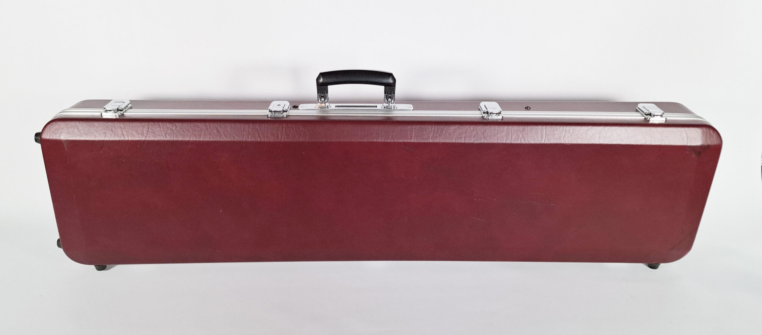 This hardcase is extra slender and looks super sleek. If you love red, this might be the perfect case for you ๐Ÿ™‚ It’s red inside and outside! It’s a super cool model and it is sturdy and reliable while looking modern and effortless. It also has feet on the short side so you can safely store it in an upright position. It hasย a very spacious compartment on the inside to hold all your sheet music and accessories, plus a snack or two!ย There’s subtle black smudges on the outside corners (see photos) that probably come off with some rubbing!