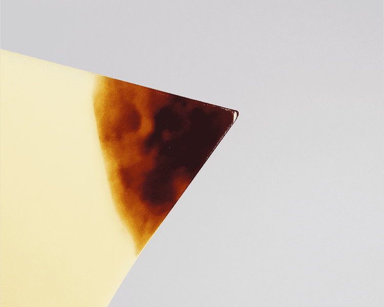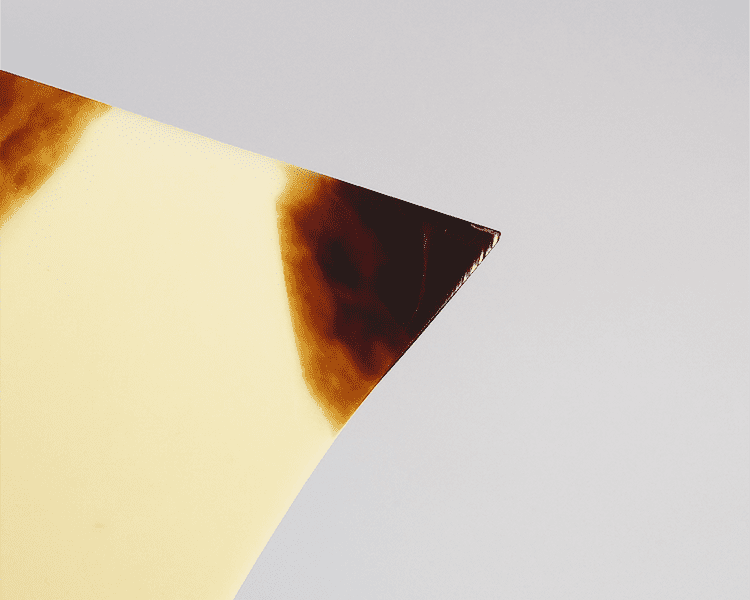 The blade of this panda bachi is sturdy and the tips are nice and firm. This bachi is pre-owned but in fantastic condition. The bekko corners have a dark caramel color. The corners show very little signs of use.