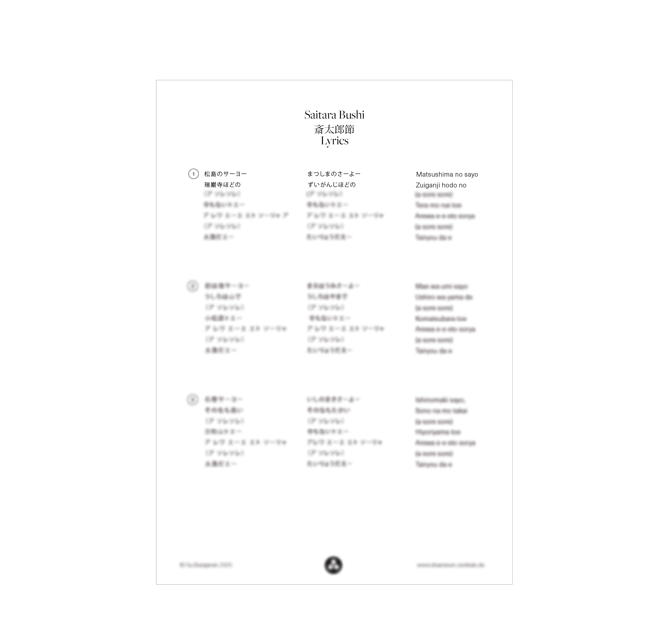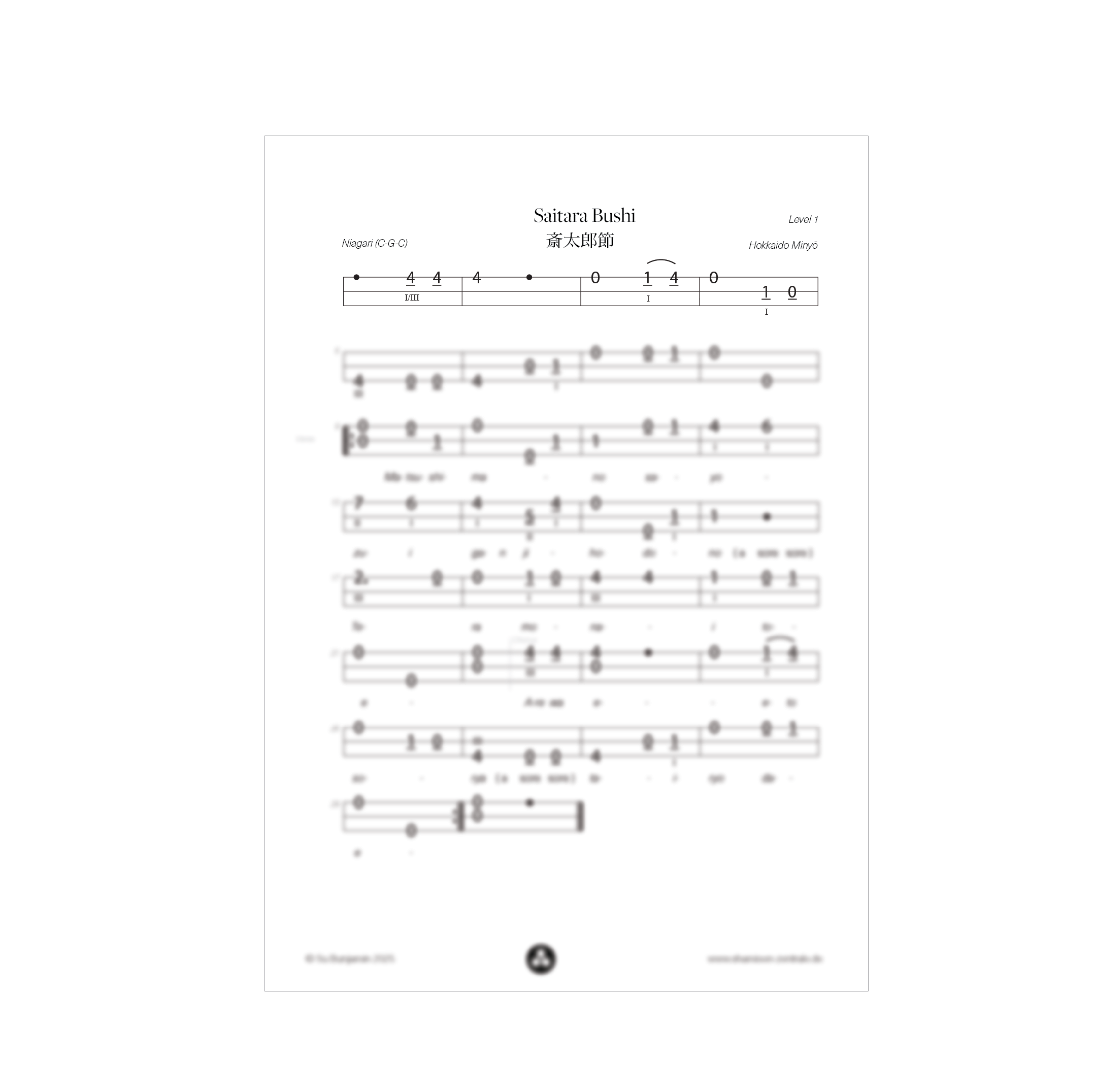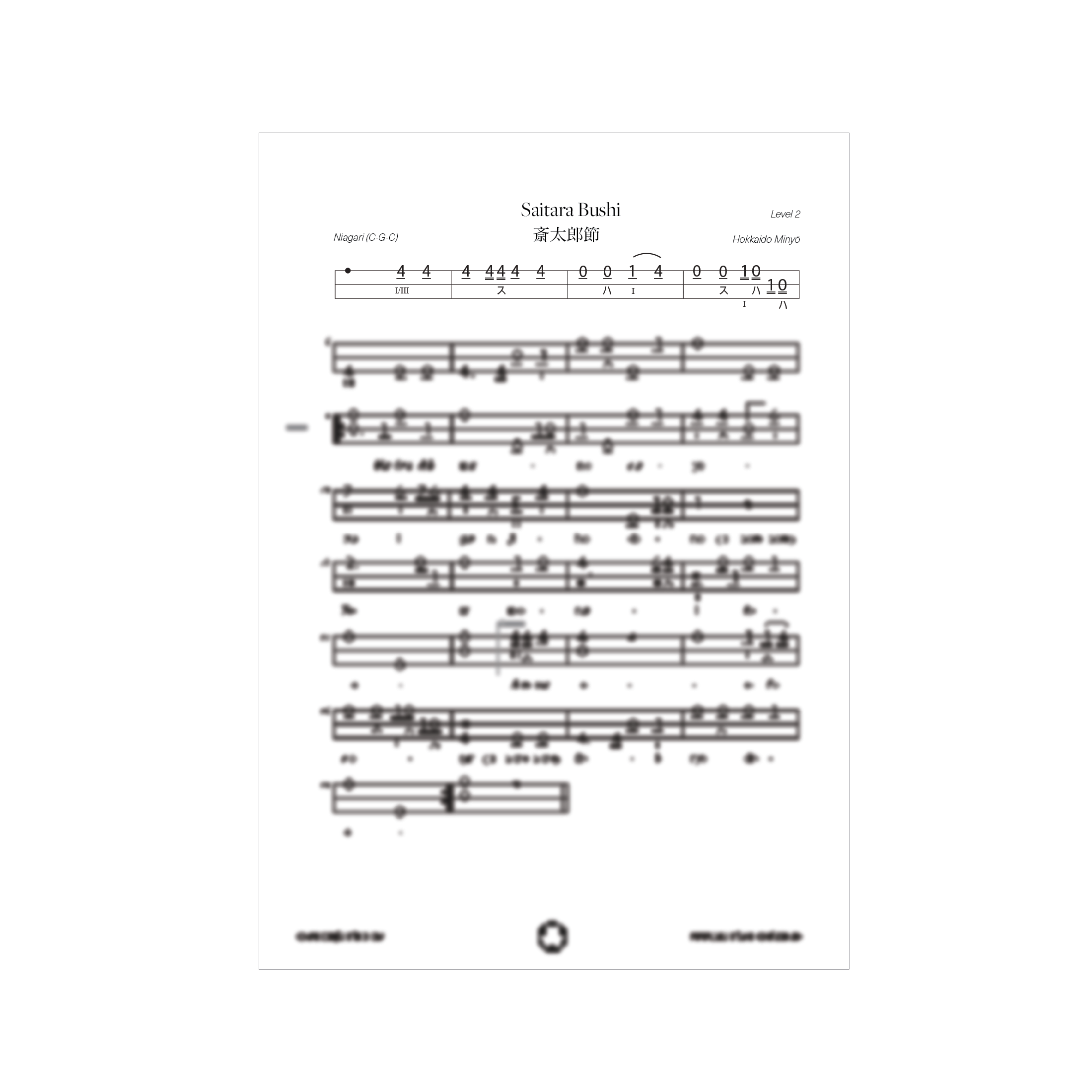 Get the notation for a moody folk song from Hokkaido called “Saitara Bushi” – in two difficulty levels and with lyrics plus super useful play along files in three speed versions to help you learn and practice the song!