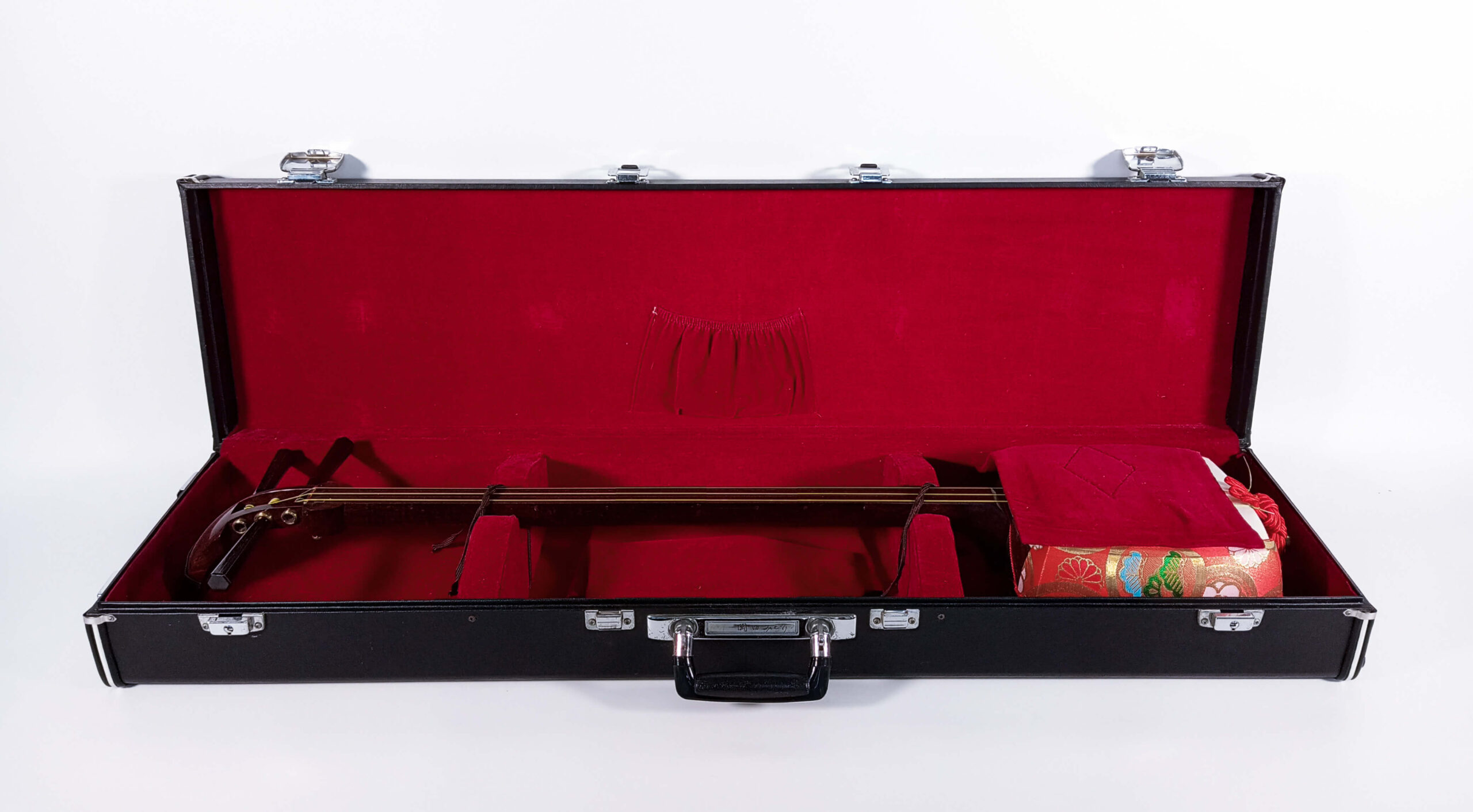 A hardcase like this is the perfect companion for your Chuuzao or Hosozao sized shamisen. Not having to take your instrument apart to transport it is a huge game changer, because you’re always ready to whip out your shamisen and play. Keeping your instrument assembled means it practically stays in tune. The hard shell keeps your instrument safe from people, doors and sneaky corners attempting to bump into your shamisen.