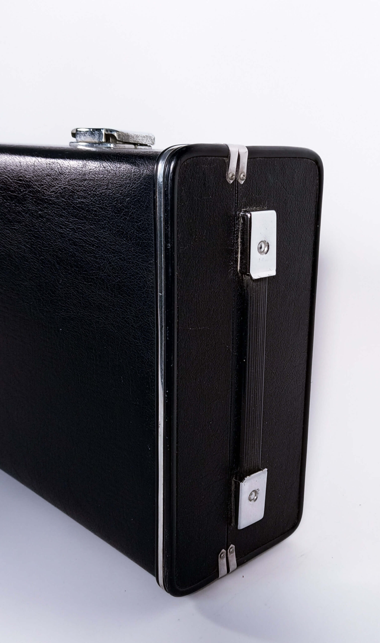 The red velvet lining is a very classy combo with classic black outer shell. Thereโs an additional handle on the short side of the case. There’s a tiny nick on the outer shell (see photos).