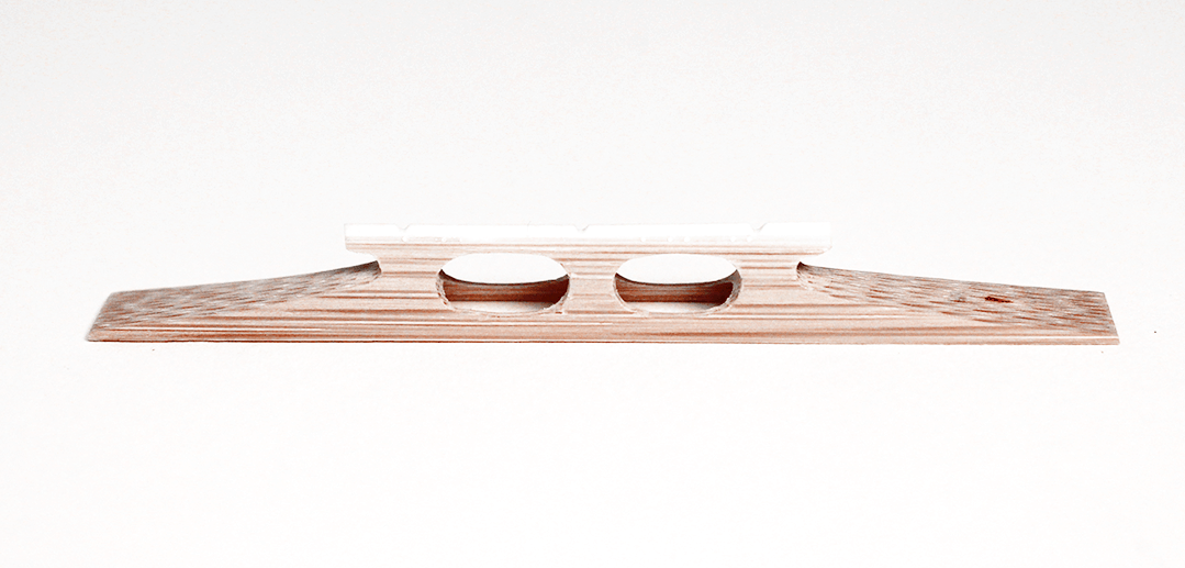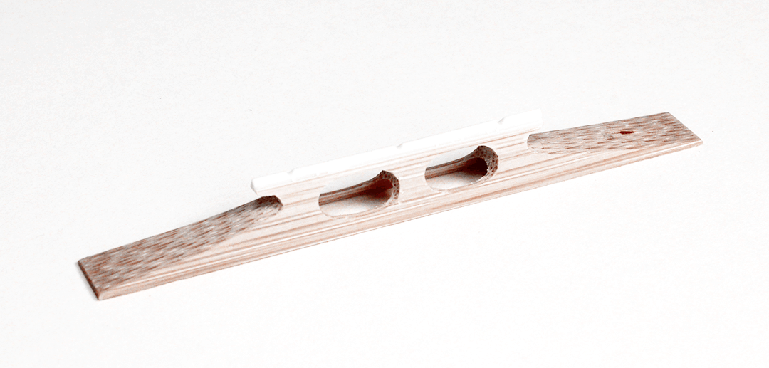 How to use it right: The koma is placed approximately 3 fingers away from the neo knot. To slide it under the string, simply pull up the strings with one finger first and then insert the koma with a swift movement and as little friction on the skin as possible. When in place, let the strings slide into the notches. Watch a super short instructional video here.